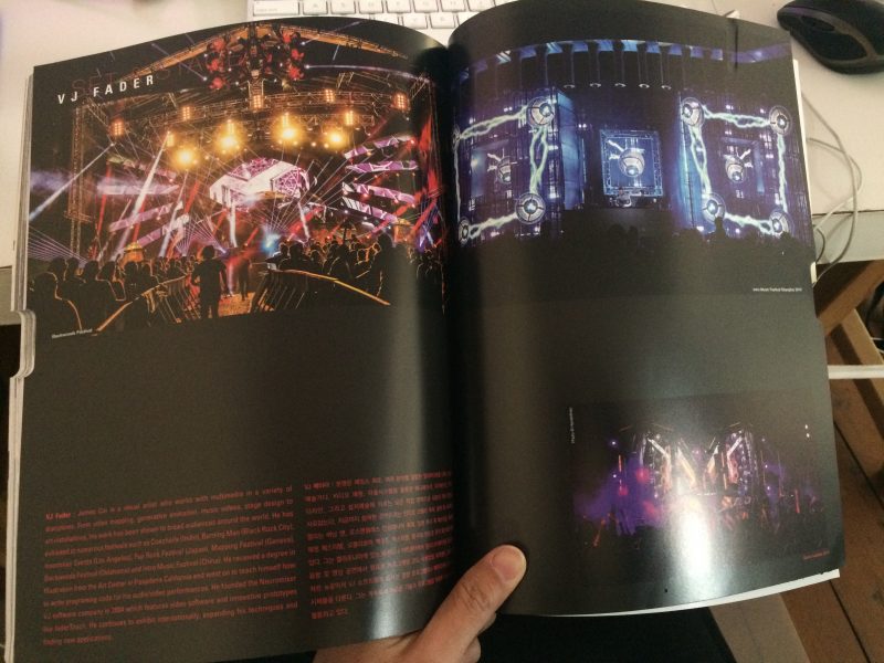 김소원 : 자기 소개를 부탁한다. VJ 페이더 : 한국 이름은 최문봉이고, VJ 페이더라는 이름으로 활동하고 있다. 친구들은 나를 제임스라고 부른다. 조선족 출신인 나는 2011년 대구시 가창면에 있는 가창창작스튜디오 입주작가로 활동하기 위해 한국에 간 적 있다. 청소년기 때부터 로스앤젤레스에서 생활했고, 4년 전 베를린으로 옮겨와 살고 있다. 패서디나 아트센터에서 일러스트레이션을 전공했지만, 전자음악에 빠져 뮤직비디오, 애니메이션 쪽에 관심이 생긴 나는 2002년 졸업 후 작은 클럽이나 행사장에서 브이제잉을 시작했다. 나는 독학으로 배운 맥스/Msp/ 지터 (음향과 영상 실시간 제어 프로그램), 프로세싱, 터치디자이너, 그리고 유니티를 다루는 프로그래머이자 소프트웨어 개발자이기도 하다. 5년 전부터 본격적으로 무대디자인을 시작했다.
